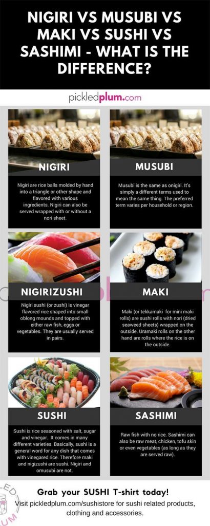 Có nhiều loại sushi khác nhau, phụ thuộc vào cách trình bày món ăn.