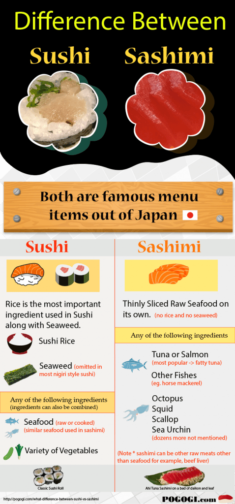 Sashimi và Sushi là những món ngon và rất phổ biến của Nhật Bản. Nhưng cách thức chuẩn bị món ăn và cách thành phần trong chúng có đôi chỗ khác nhau.